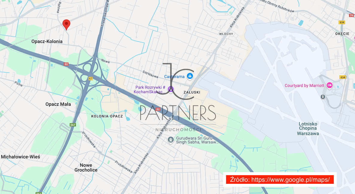 Opacz - Kolonia, nieopodal Okęcia, południowo-zachodnia granica Warszawy, nieopodal al. Jerozolimskich, doskonały dojazd do portu lotniczego, bezpośrednio przy węźle dróg S8, A2, oraz krajowej drogi nr 7.