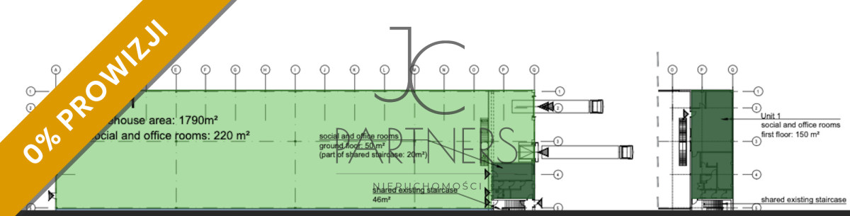Moduł biurowy z socjalem - 50 m2 przy magazynie, Moduł biurowy - 150 m2 na I piętrze: