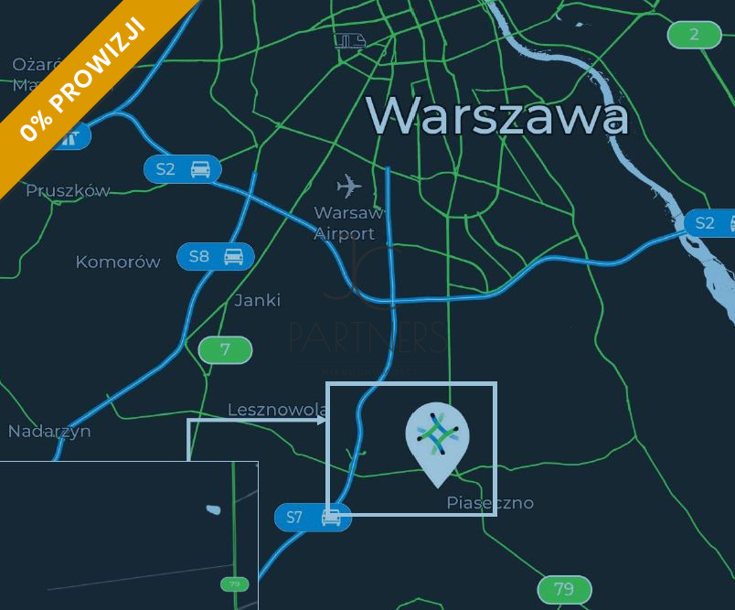 Obiekt położony 15 km na południe od centrum Warszawy, 7 km od Portu Lotniczego Okęcie oraz nieopodal wjazdu na autostradę A2 i obwodnicy Warszawy. Kompleks magazynowo-biurowy położony w obrębie miasta Piaseczno, z dogodnym dojazdem.