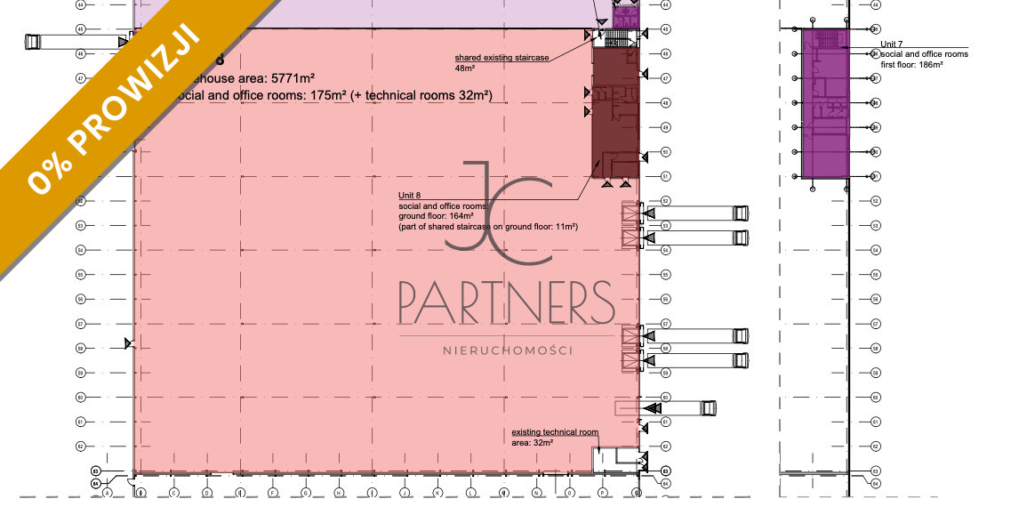 Powierzchnia magazynowa 5771 m2 wraz z powierzchnią biurową i socjalną 175 m2.
