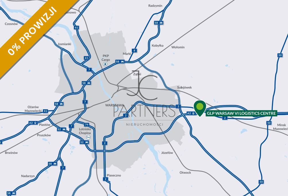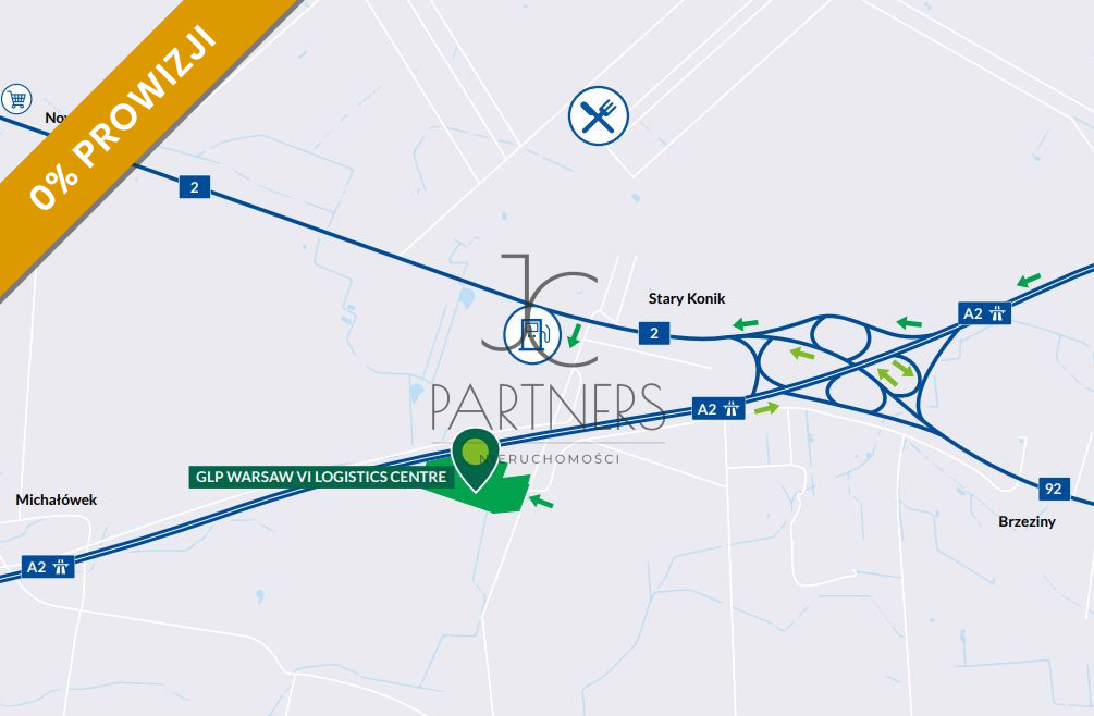 Obiekt położony we wschodniej części obrzeż warszawy, oddalony od centrum zaledwie od 24 km. Projekt znajduje się w bezpośrednim sąsiedztwie węzła „Stary Konik” oraz w pobliżu budowanej autostrady A2.