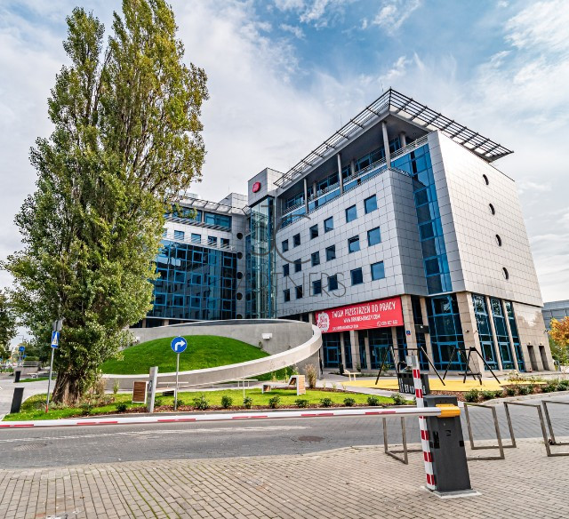 Nowoczesny, kameralny, budynek biurowy z główną recepcją, oraz parkingiem wyposażony nowoczesne windy.