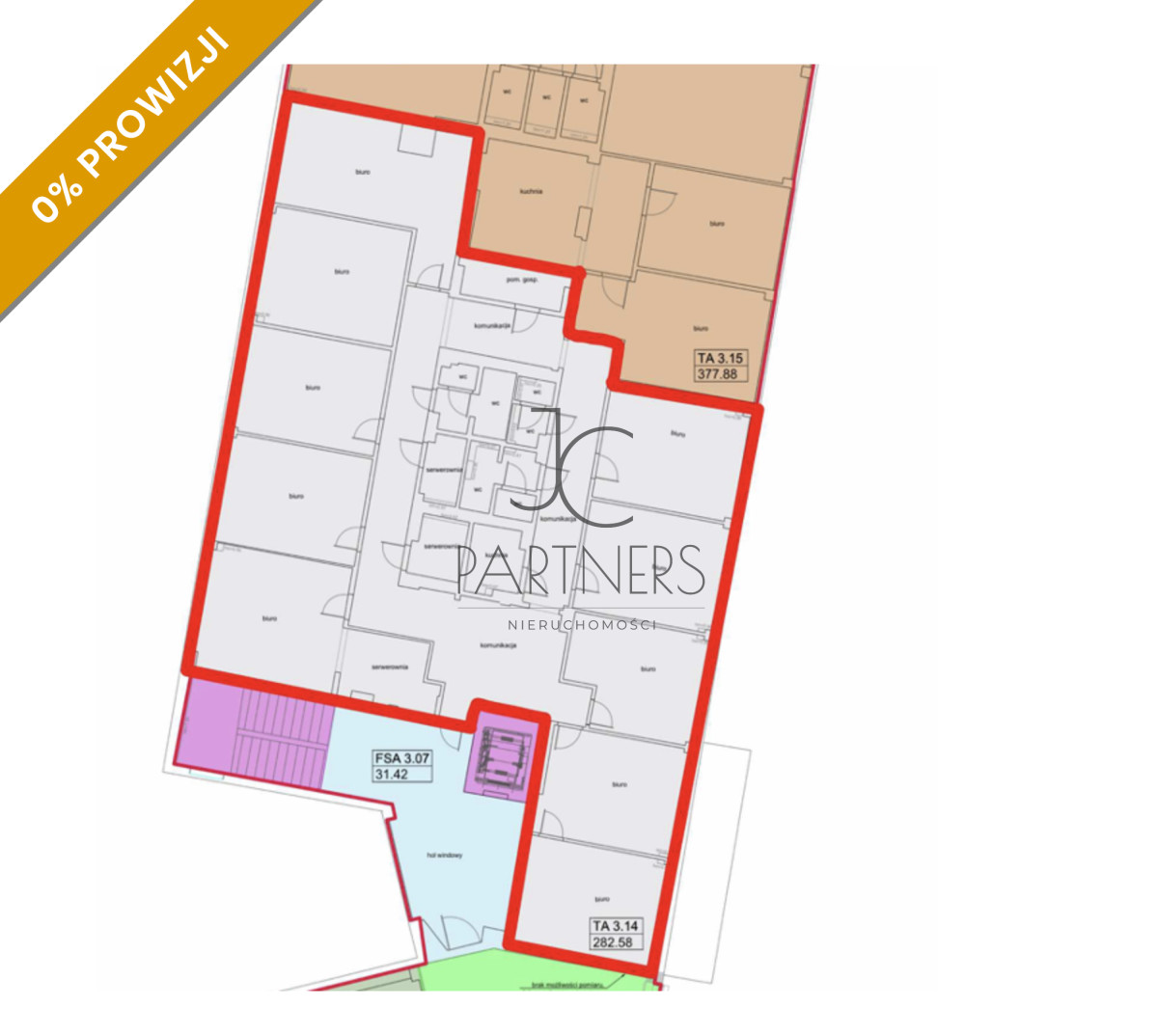 Powierzchnia 282 m2 netto (301,74 m2 brutto - zawiera współczynnik powierzchni wspólnych) znajduje się na III piętrze (rzut w galerii)