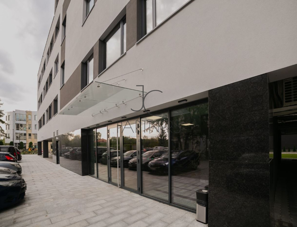 Nowoczesny kompleks biurowo konferencyjno hotelowy, z dostępnymi miejscami parkingowymi.