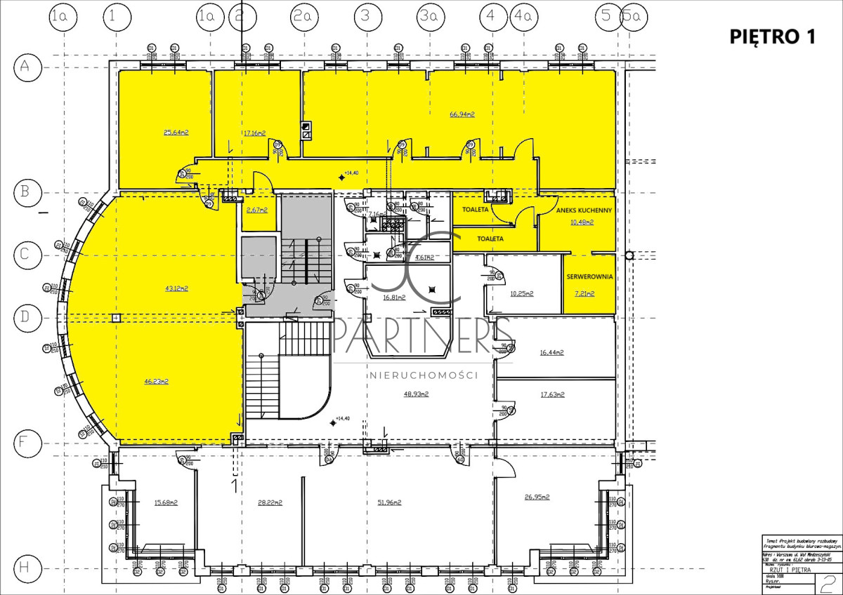 Kameralny nowoczesny ceterokodygnacyjny budynek biurowy, usytuowany w głębi działki, powierzchnia do aranżacji po poprzednim najemcy 247,4 m2 netto (262,24 m2 brutto - zawiera współczynnik powierzchni wspólnych), położona na I piętrze, biuro dostępne od już !!! rzut w galerii.