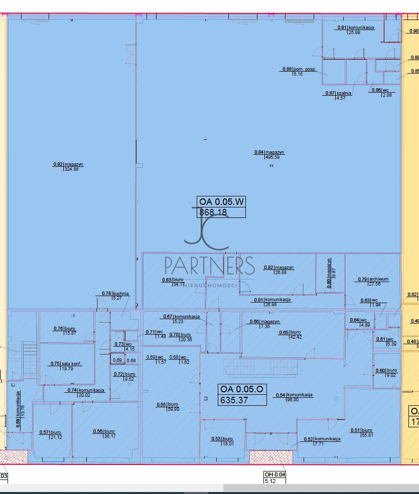 Powierzchnia magazynowa 868 m2 (połączone moduły 495 m2 i 324 m2) wraz z powierzchnią biurową 600 m2 (wielkość biura do rozmów)