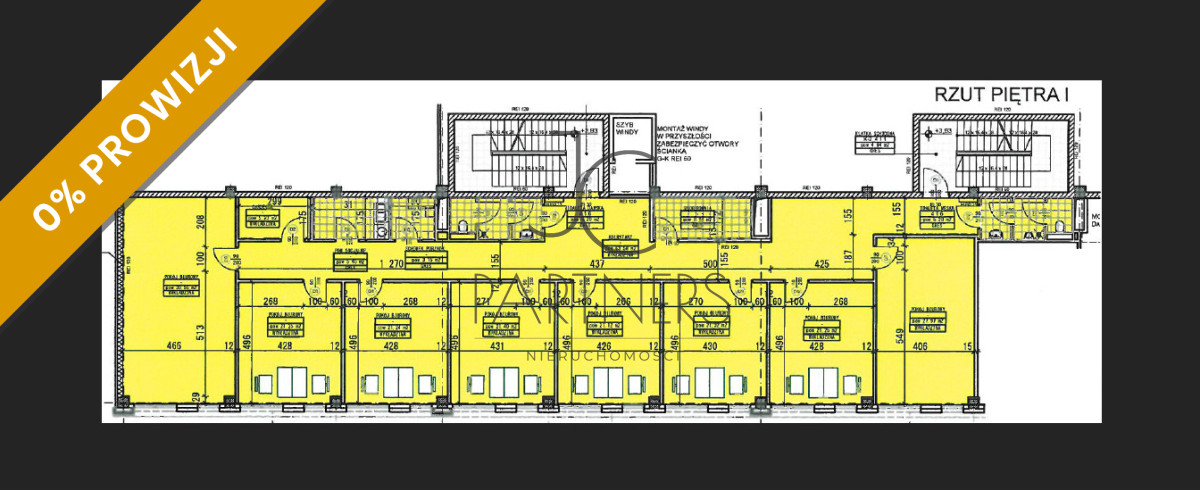 - Winda w standardzie w dużych biurach dwupoziomowych