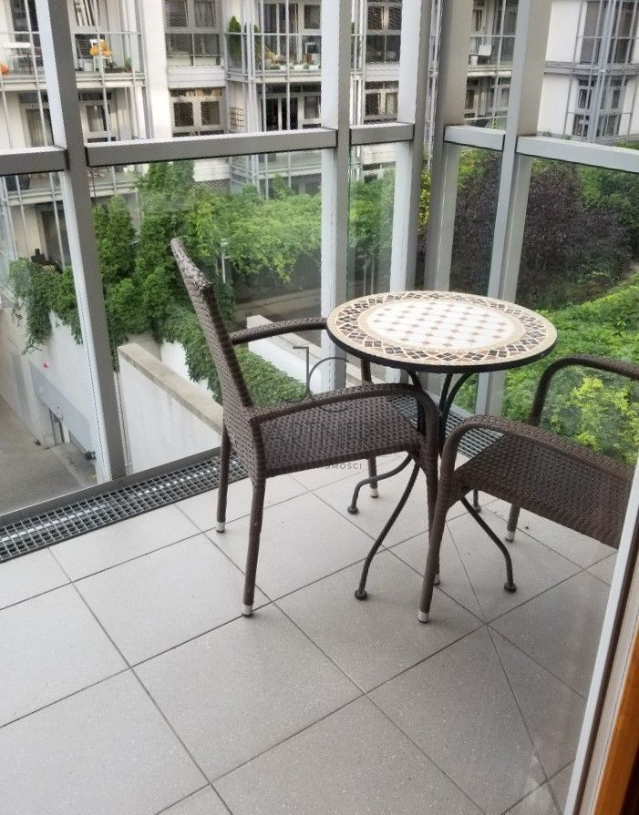 Widok na patio i nowoczesne okoliczne budynki. Idealny do wypoczynku.