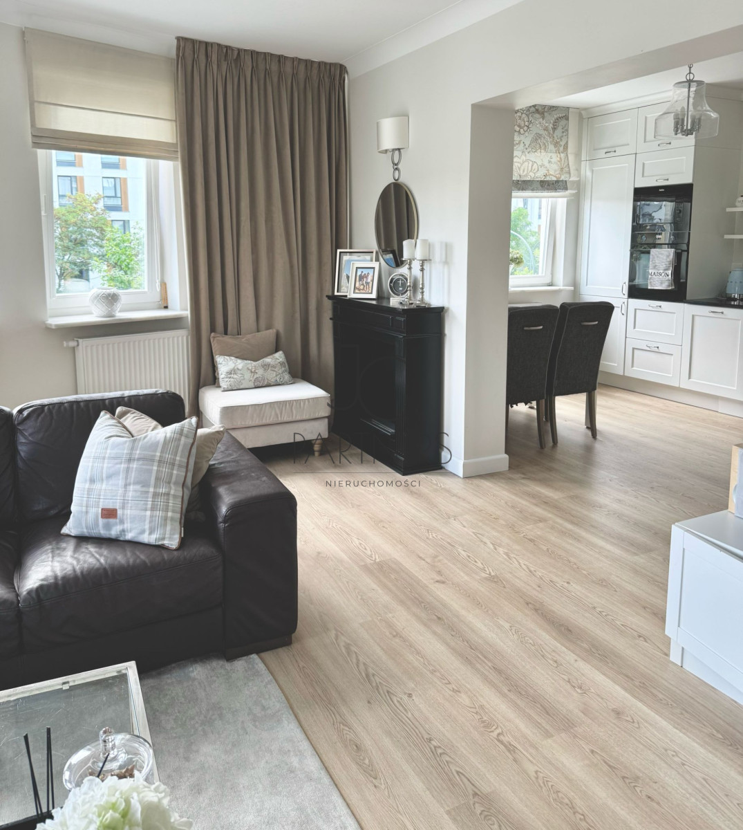 • Przestronny salon z częścią jadalnianą i wyjściem na balkon z widokiem na zieleń