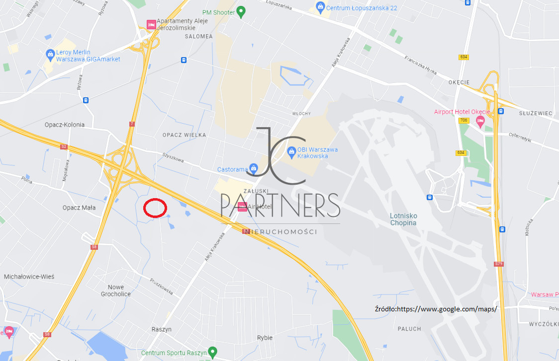 Raszyn, południowo-zachodnia granica Warszawy, doskonały dojazd do portu lotniczego, bezpośrednio przy węźle dróg S8, A2, oraz krajowej drogi nr 7.