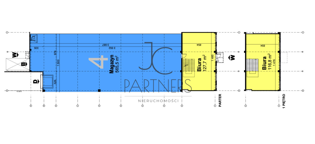 - Dostęp do magazynu odbywa się z biura z poziomu parteru