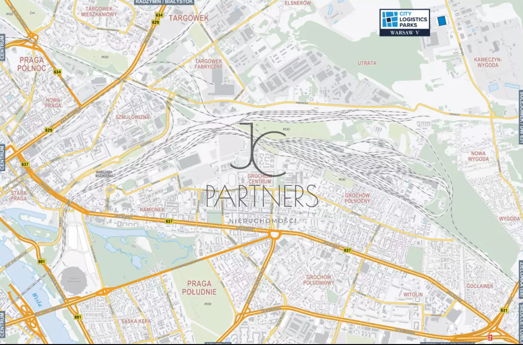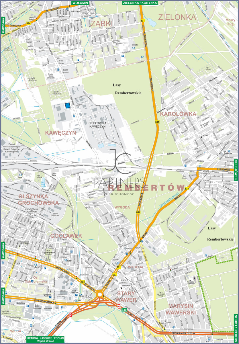 Warszawa Rembertów, obiekt jest położony w bliskim sąsiedztwie stacji kolejowej ,,Ząbki". Magazyn oddalony jest 6 km od drogi ekspresowej S8, 12 km od centrum Warszawy oraz 20 km od Portu Lotniczego im. Fryderyka Chopina w Warszawie, w bezpośrednim sąsiedztwie węzłów - Patriotów oraz Wał Miedzeszyński, który łączy trasę S2 z drogą krajową nr 801.