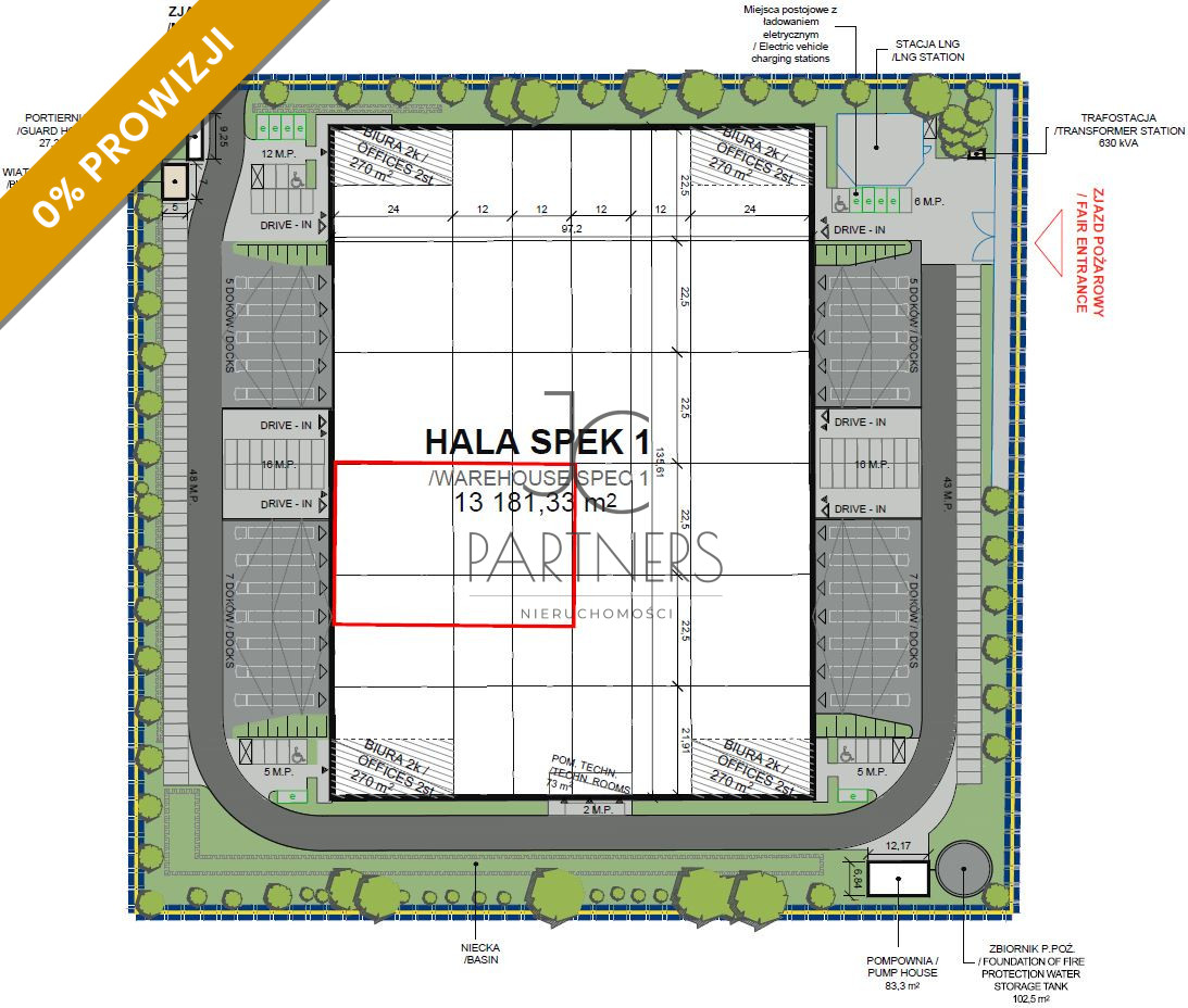 - Siatka słupów 22.5 m x 12 m