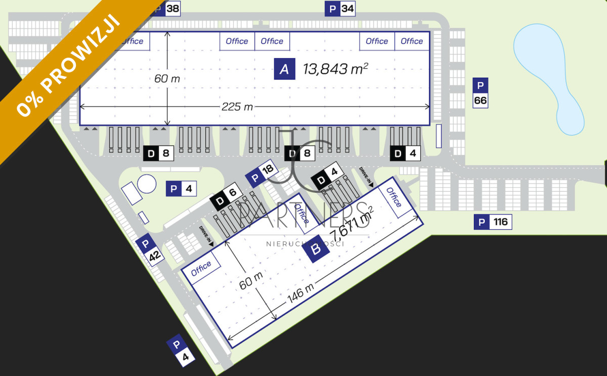 Powierzchnia wchodzi w skład nowoczesnego parku magazynowo biurowego składającego się z nowoczesnych dwóch hal magazynowych o łącznej powierzchni ok. 22.000 m2, wyposażonego w doki oraz bramy "0". Centrum logistyczne jest optymalnie dopasowane do wymogów magazynowych najemców z różnych branż.